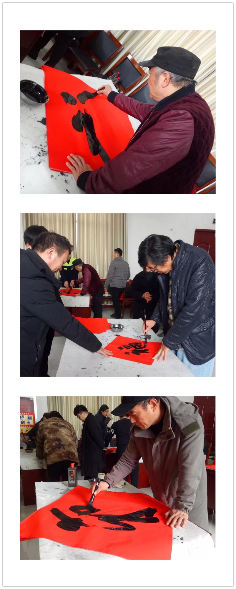 在活動(dòng)現(xiàn)場(chǎng),書(shū)法家們揮毫潑墨,一筆一畫(huà),勾勒得鏗鏘有力,員工們圍在書(shū)法家身邊,挑選自己中意的對(duì)聯(lián)內(nèi)容,或請(qǐng)書(shū)法家為自己專(zhuān)門(mén)書(shū)寫(xiě)提前準(zhǔn)備好的內(nèi)容,經(jīng)過(guò)書(shū)法家們的妙手,不一會(huì)兒,一個(gè)個(gè)字體多樣、墨寶飄香的“福”字和一幅幅寓意喜慶吉祥的春聯(lián),不斷呈現(xiàn),員工們有的幫忙牽紙加墨,有的將寫(xiě)好的對(duì)聯(lián)進(jìn)行晾曬,整個(gè)活動(dòng)現(xiàn)場(chǎng)一片歡樂(lè)祥和,洋溢著喜慶的氣氛。